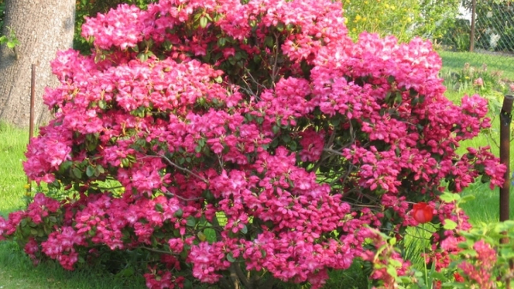 Różanecznik (łac. Rhododendron) – duże, zimozielone krzewy wytwarzające twarde, skórzaste liście. Kwitnące wiosną (V-VI). Kwiaty duże, zebrane w okrągłe lub półokrągłe kwiatostany (nawet do 20 cm średnicy). |