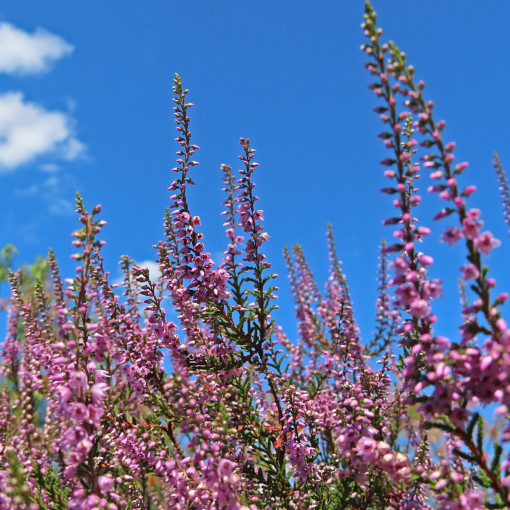 Wrzosy (łac. Calluna sp.) – zimozielone krzewinki wysokość od 10 cm do 0,5 m, kwitnące latem i jesienią. Liście w zależności od odmiany żółte, zielone, szarozielone, brunatne. Kwiaty pełne lub pojedyncze, mogą być białe, różowe lub karminowe. |