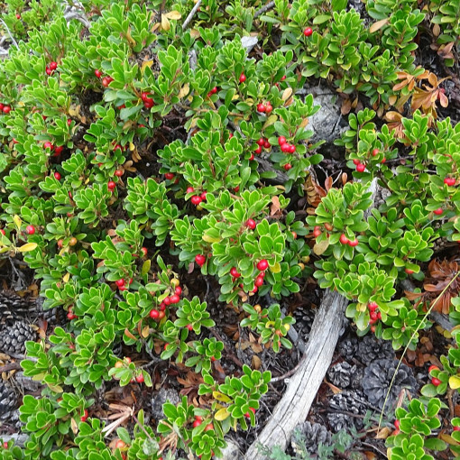 Mącznica lekarska (łac. Arctostaphylos uva-ursi) – zimozielona, płożąca roślina. Drobne ciemnozielone, skórzaste liście, kwiaty drobne, białe, zaróżowione V-VI, czerwone owoce. |