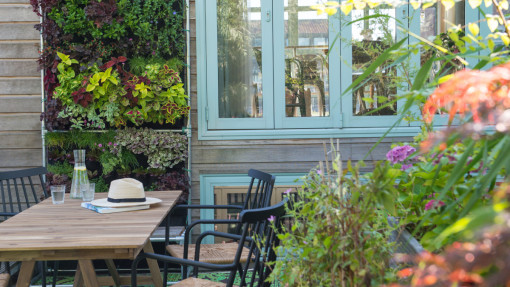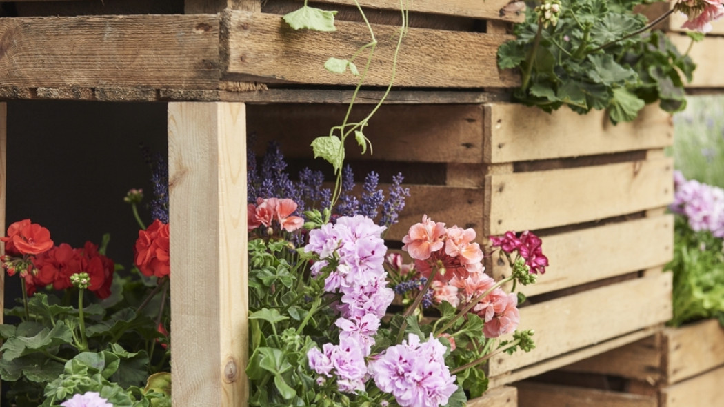 Taką ścianę można postawić na małym tarasie lub balkonie. Zajmuje mało miejsca, a przy tym jest niedroga! Do zbudowania konstrukcji wykorzystano stare drewniane skrzynki po owocach. W słonecznym miejscu w roli głównej najlepiej sprawdzą się pelargonie, które będą ozdobą od maja do października. Ta ściana nie tylko przyciąga wzrok, ale przede wszystkim pełni funkcję parawanu, który oddziela od zgiełku miasta i daje odrobinę prywatności.