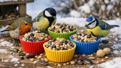 Dla wielu ptaków przysmakiem jest tłuszcz zwierzęcy (słonina lub łój), a także zalane roztopionym tłuszczem nasiona i orzechy – tzw. zimowe kule. Powieśmy je i uzupełniajmy karmniki w okresie, gdy ptaki mają problem ze znalezieniem pokarmu przez warstwę śniegu.