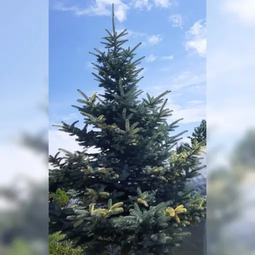 Po 10 latach uprawy uzyskuje około 3-4 m wysokości. Igły ma dosyć długie, kłujące, gęsto ułożone, niebieskie. Igły zachowują swój ciekawy, intensywny kolor przez cały rok.