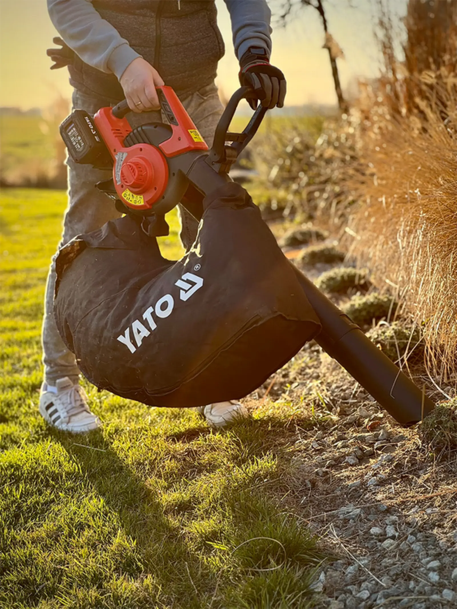 Akumulatorowa dmuchawa i odkurzacz do liści. Urządzenie jest lekkie i ma wygodny dla użytkownika kompaktowy kształt. Zasilanie dwoma akumulatorami umożliwia długi czas pracy (do 40 minut). Funkcja Turbo uruchamia pracę z prędkością nadmuchu 270 km/h, dorównując urządzeniom spalinowym. Pokrywa rewizyjna wentylatora umożliwia łatwe usunięcie zassanych kawałków gałęzi i łodyg.