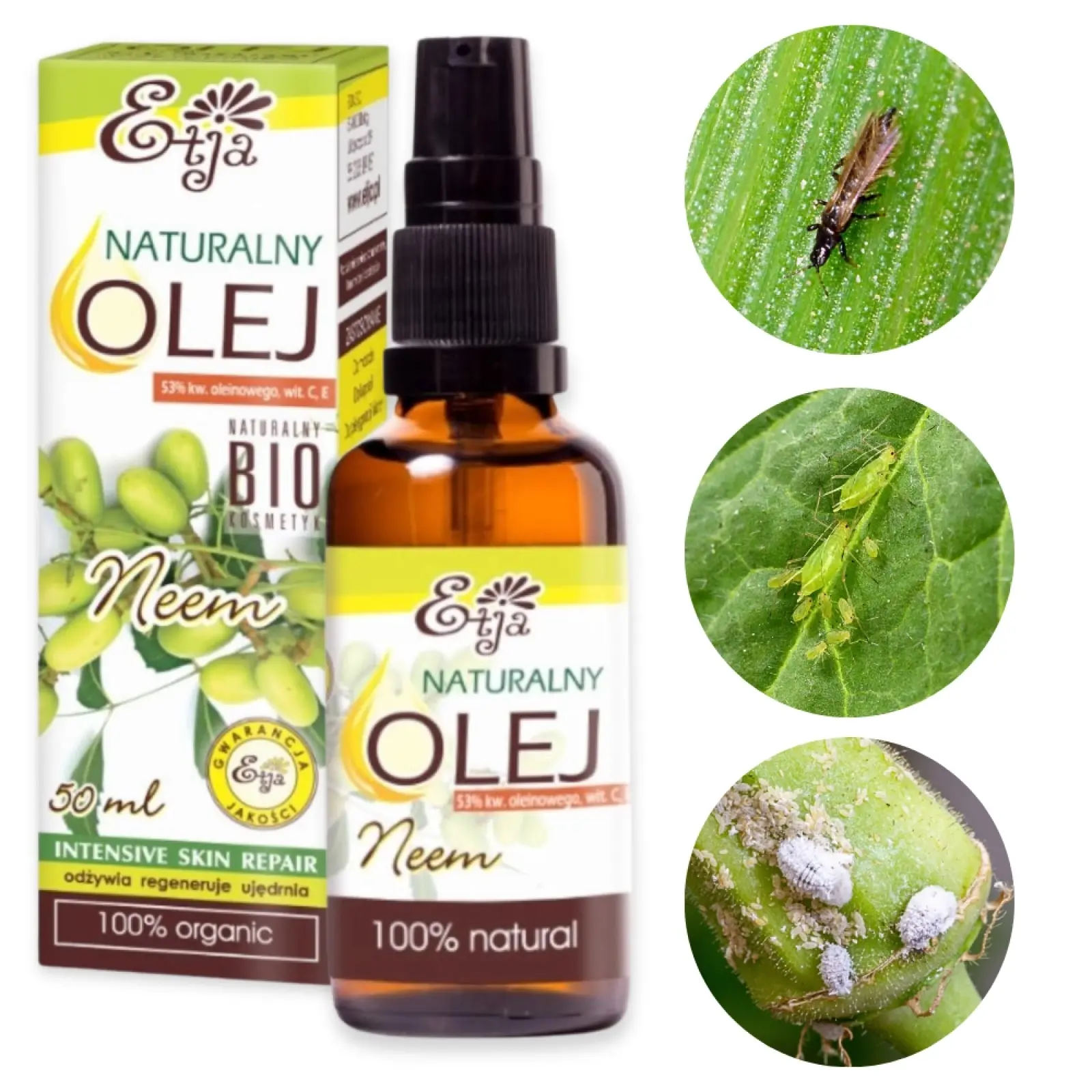 100% naturalny, nierafinowany, tłoczony na zimno olej z ekologicznych nasion drzewa miodli indyjskiej. Pozwala w naturalny, ekologiczny oraz co najważniejsze bezpieczny sposób zwalczać popularne szkodniki i chronić rośliny uprawowe i ozdobne. Bezpieczny dla ludzi, zwierząt oraz pożytecznych zapylaczy odwiedzających ogród.