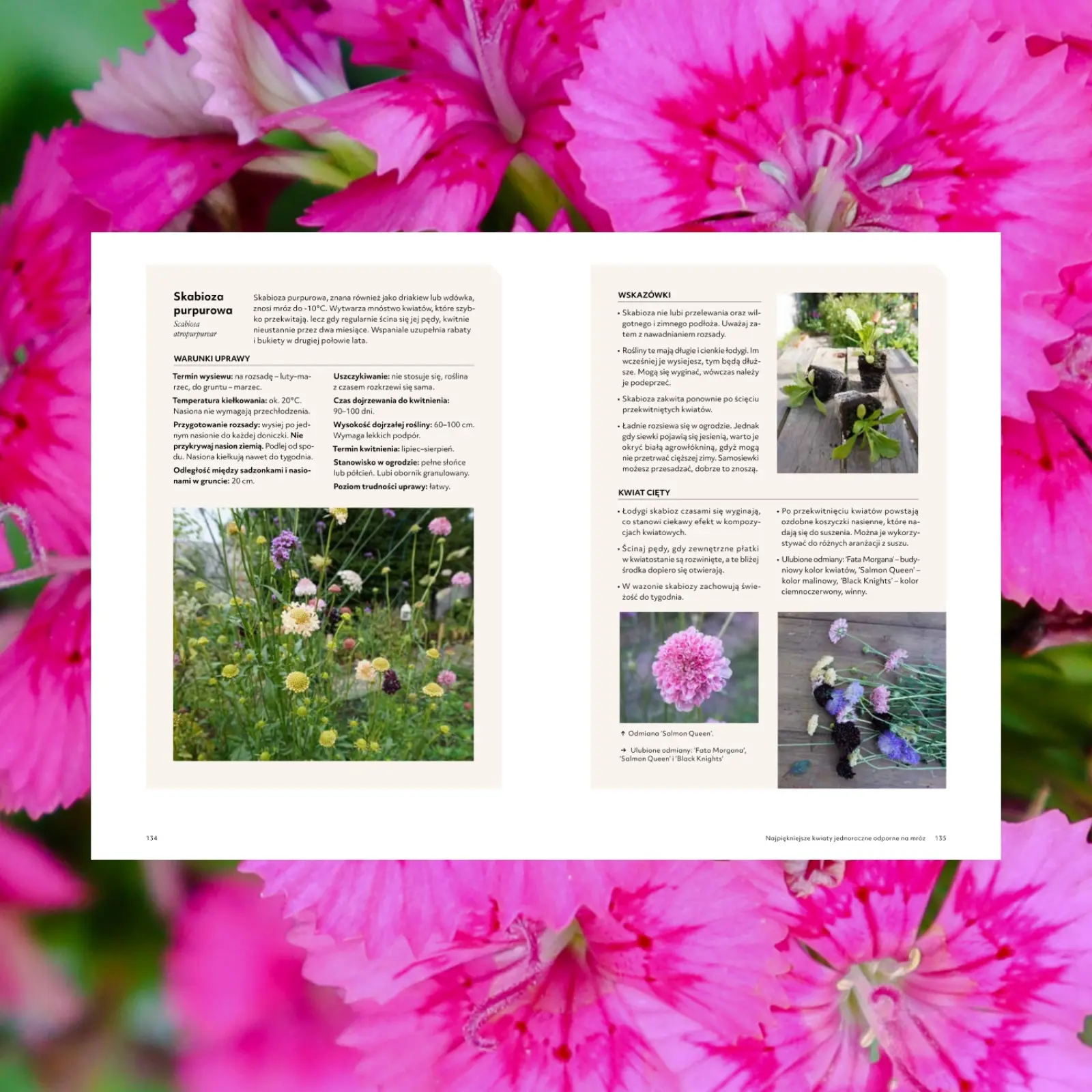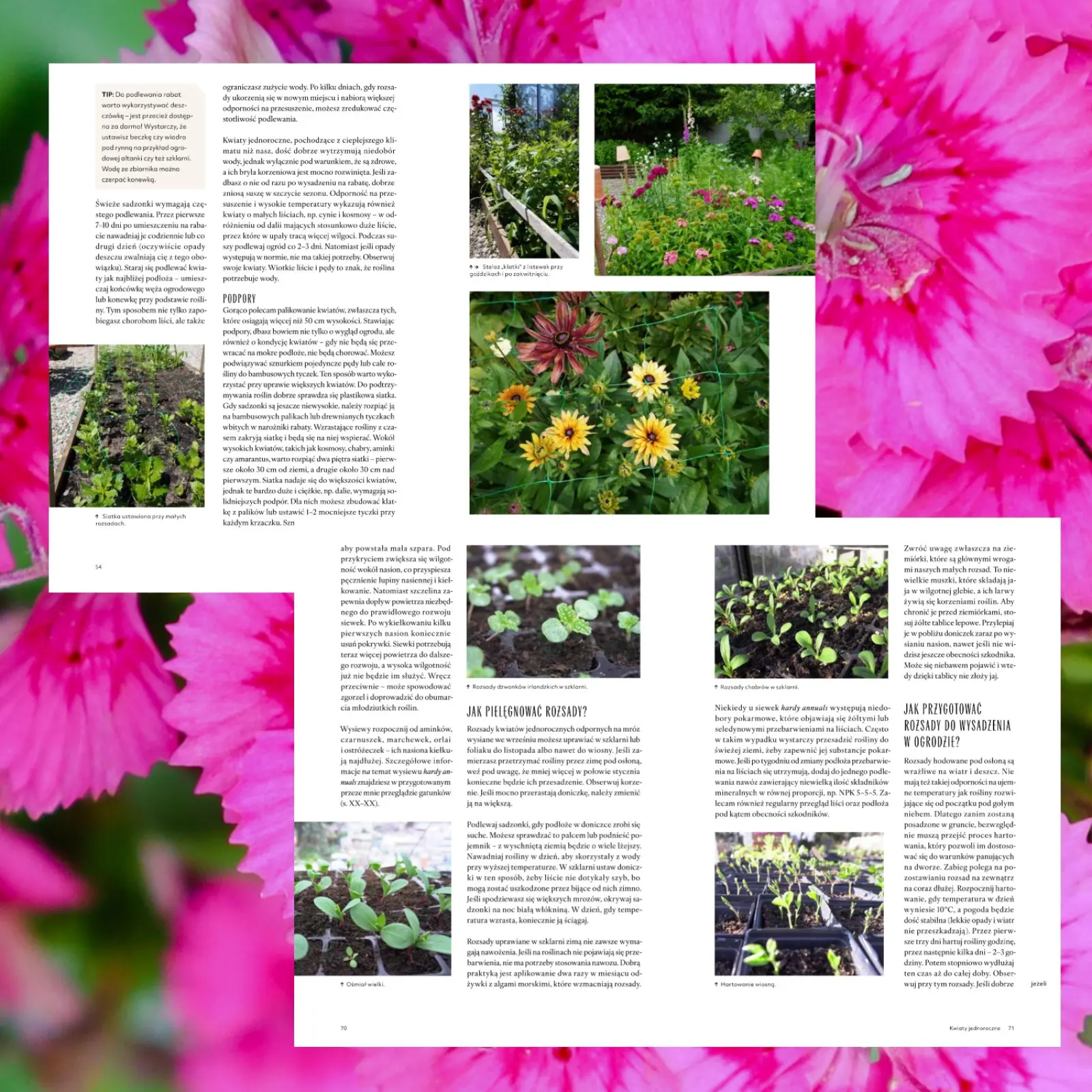 Drugi i trzeci rozdział autorka poświęciła na prezentacje i omówienie zasad uprawy – kwiatów jednorocznych i dwuletnich. Poza opisami gatunków, terminami i metodami wysiewów, znajdziemy tu m.in. informacje o strefach mrozoodporności w Polsce, wysiewaniu pod osłonami oraz do gruntu, wykorzystywaniu lamp, pielęgnowaniu rozsady, a także jej wysadzaniu na miejsce stałe.