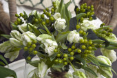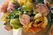 Bukiet to przede wszystkim kolor i faktura. Możecie łączyć kwiaty kolorystycznie wedle uznania, ale początkującym na pewno nie zaszkodzi zacząć od komponowania kolorów o tej samej tonacji - ciepłej albo zimnej. Kontrasty warto zostawić sobie na później.