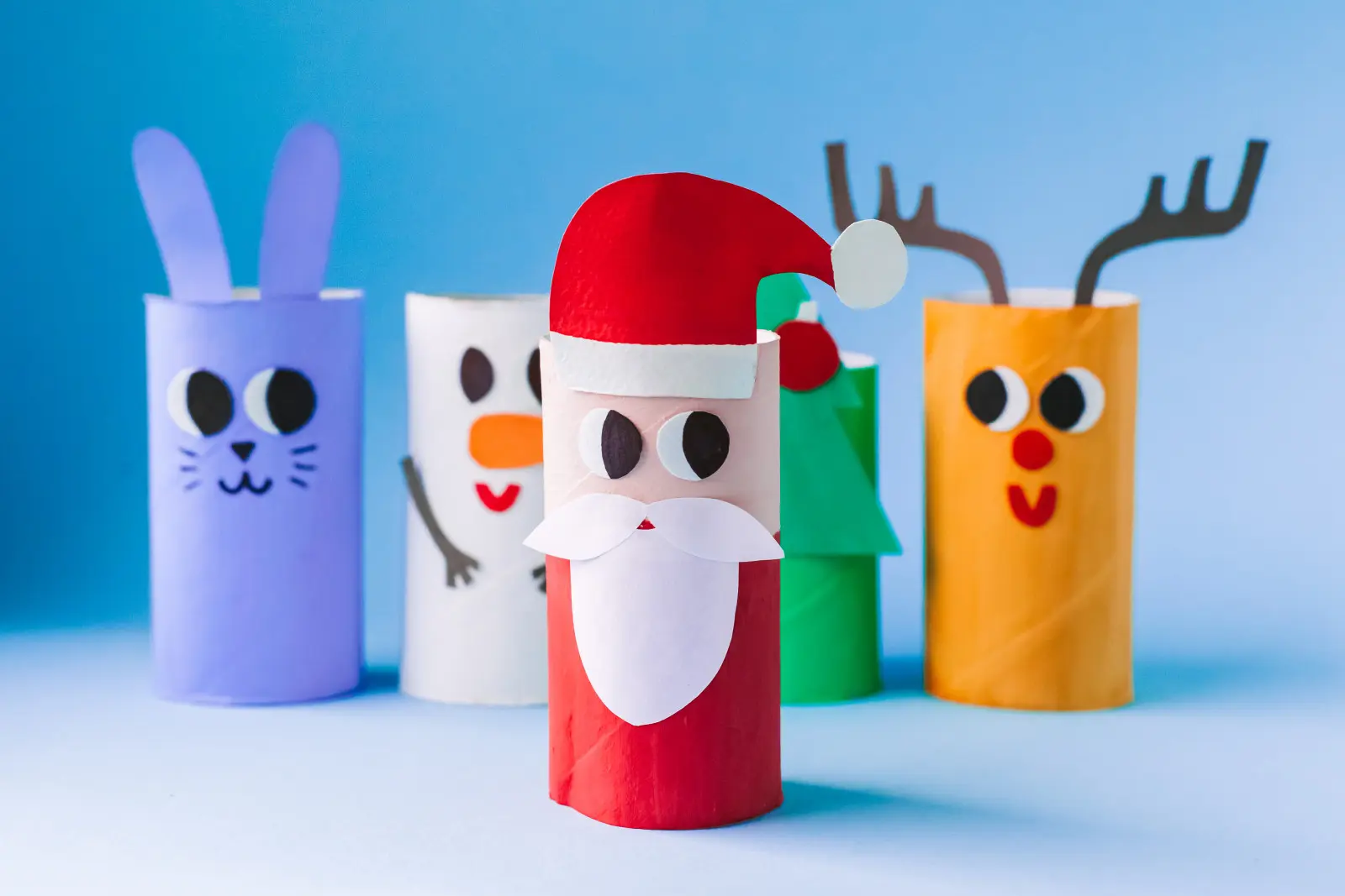 Rolka pomalowana na czerwono, z doklejoną białą brodą i czapką tworzy prostego, ale efektownego Mikołaja DIY. Sprawdza się jako lekka dekoracja na półkę lub parapet, pod warunkiem że stoi z dala od wilgoci i kaloryfera.