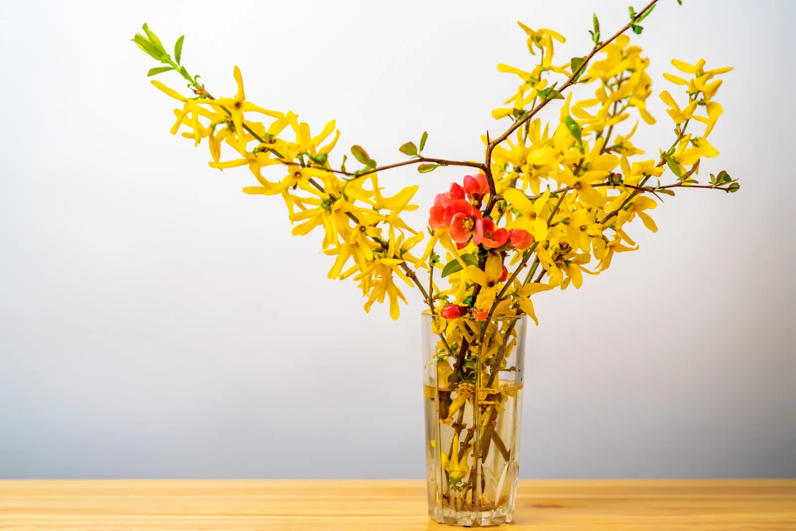 Forsycja – absolutna klasyka. Jej żółte kwiaty pojawiają się nawet po 10 dniach od cięcia.
