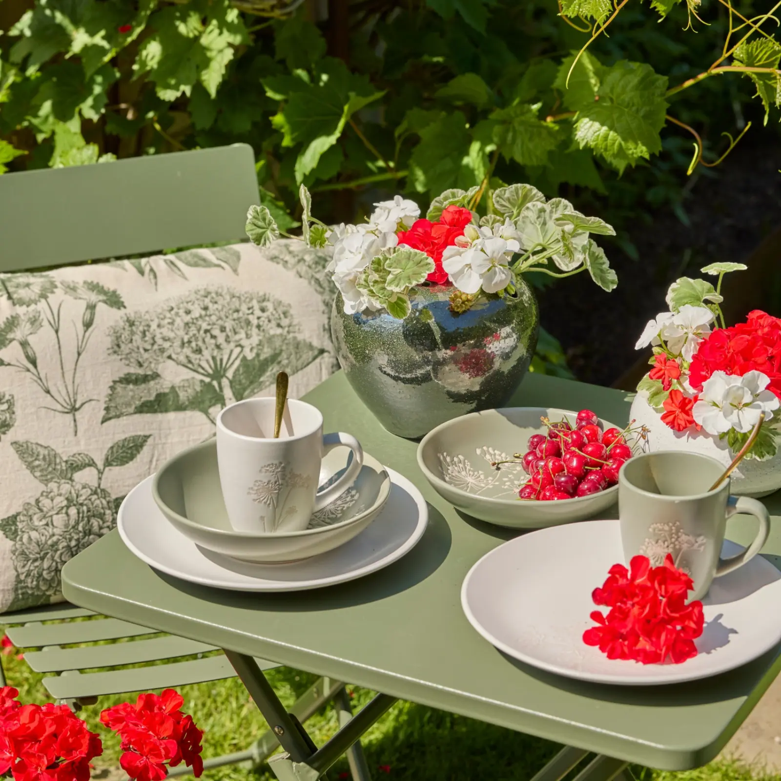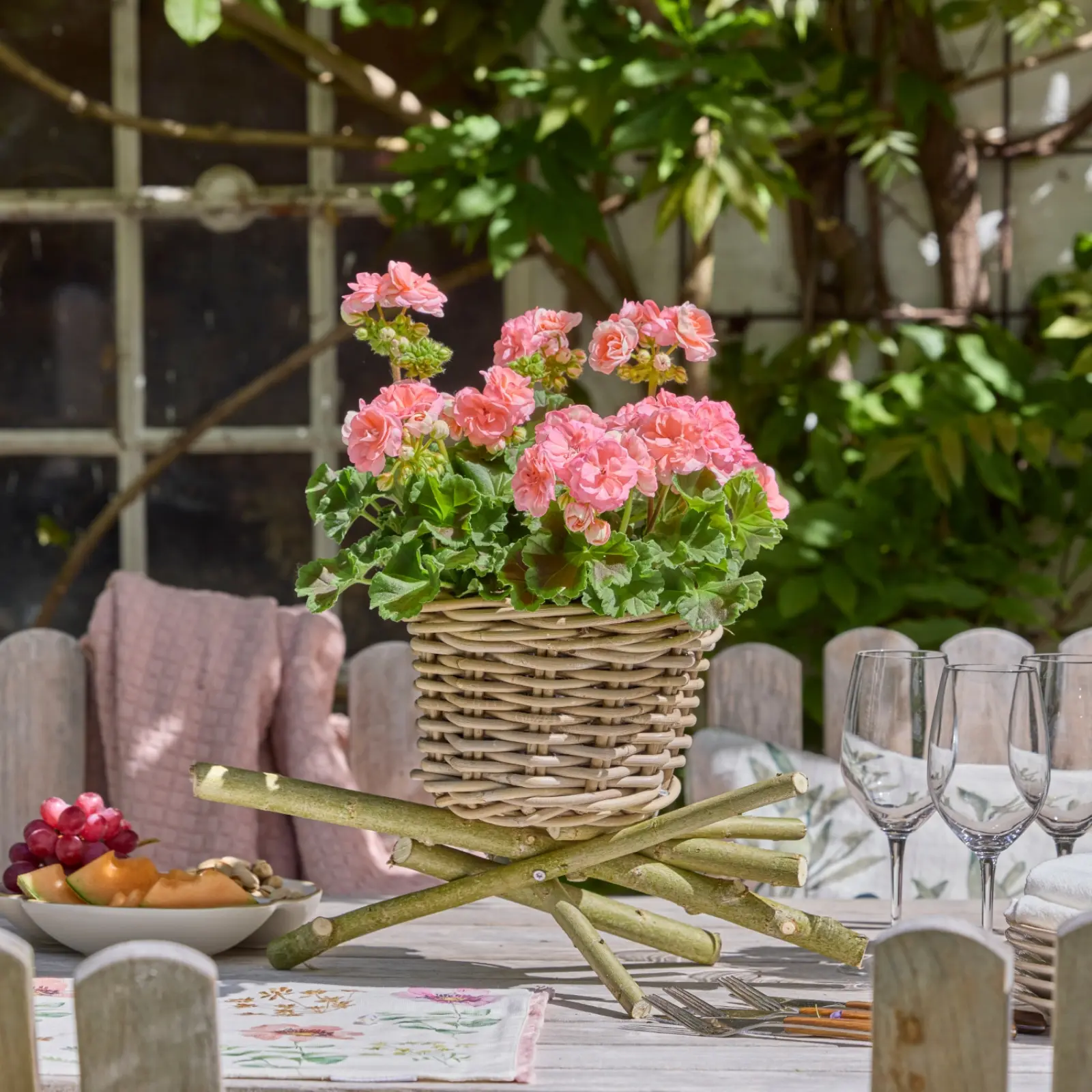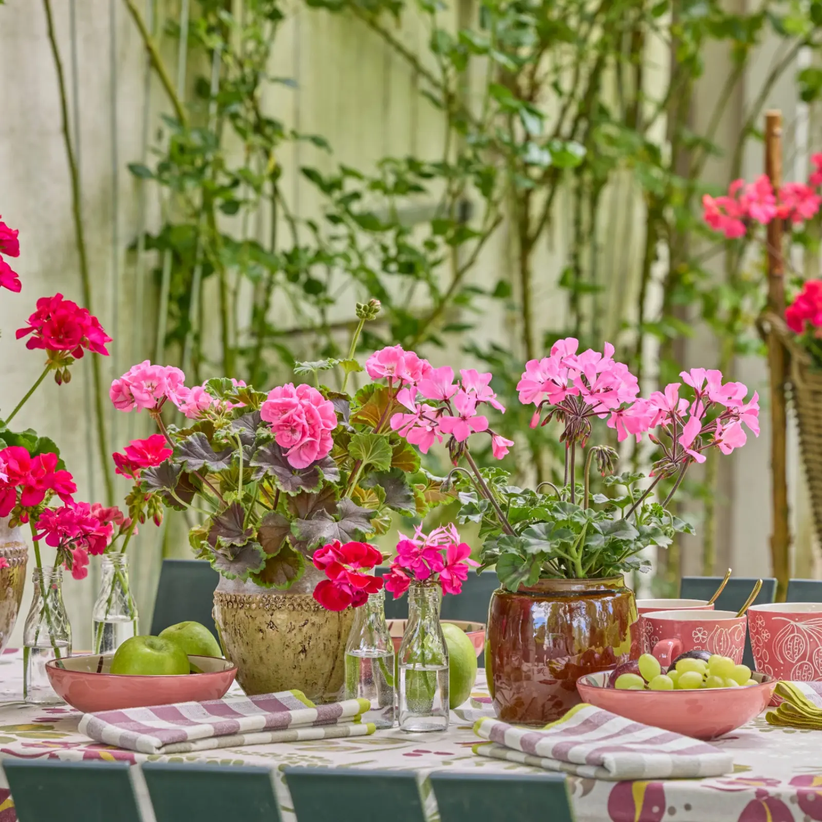 Pelargonie mogą zdobić balkon nie tylko w skrzynkach i donicach, ale również jako kwiaty cięte ustawione bezpośrednio na stole. Pelargonie dobrze prezentują się zarówno w większych wazonach jako główny akcent dekoracyjny, jak i w małych szklanych wazonikach z pojedynczymi pędami, które dodają nakryciu subtelności i uroku. Taka dekoracja sprawdza się zwłaszcza podczas śniadań na balkonie, popołudniowej kawy czy letnich spotkań przy stole, bo pozwala przenieść kolor kwiatów z balustrady i donic wprost do strefy wypoczynku.