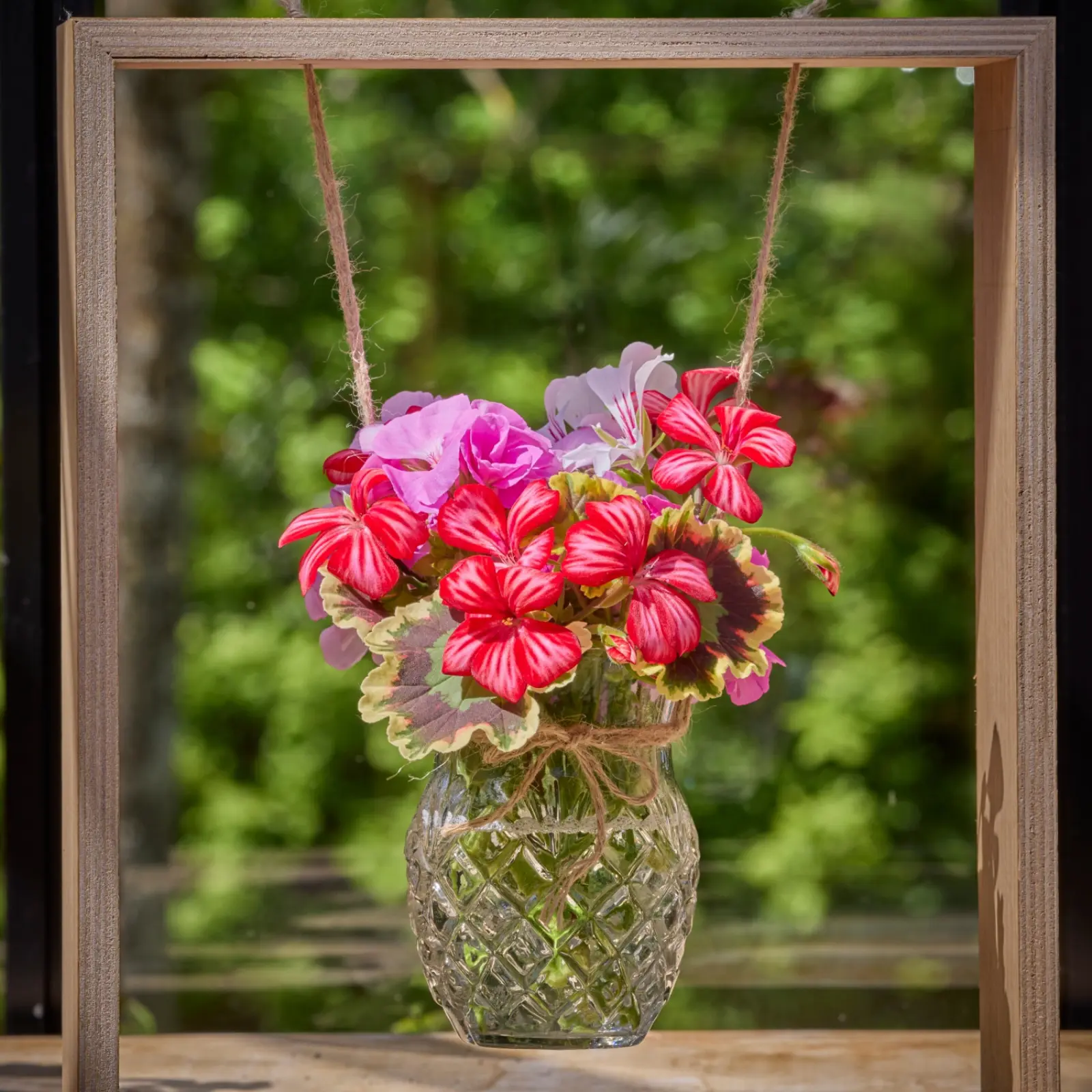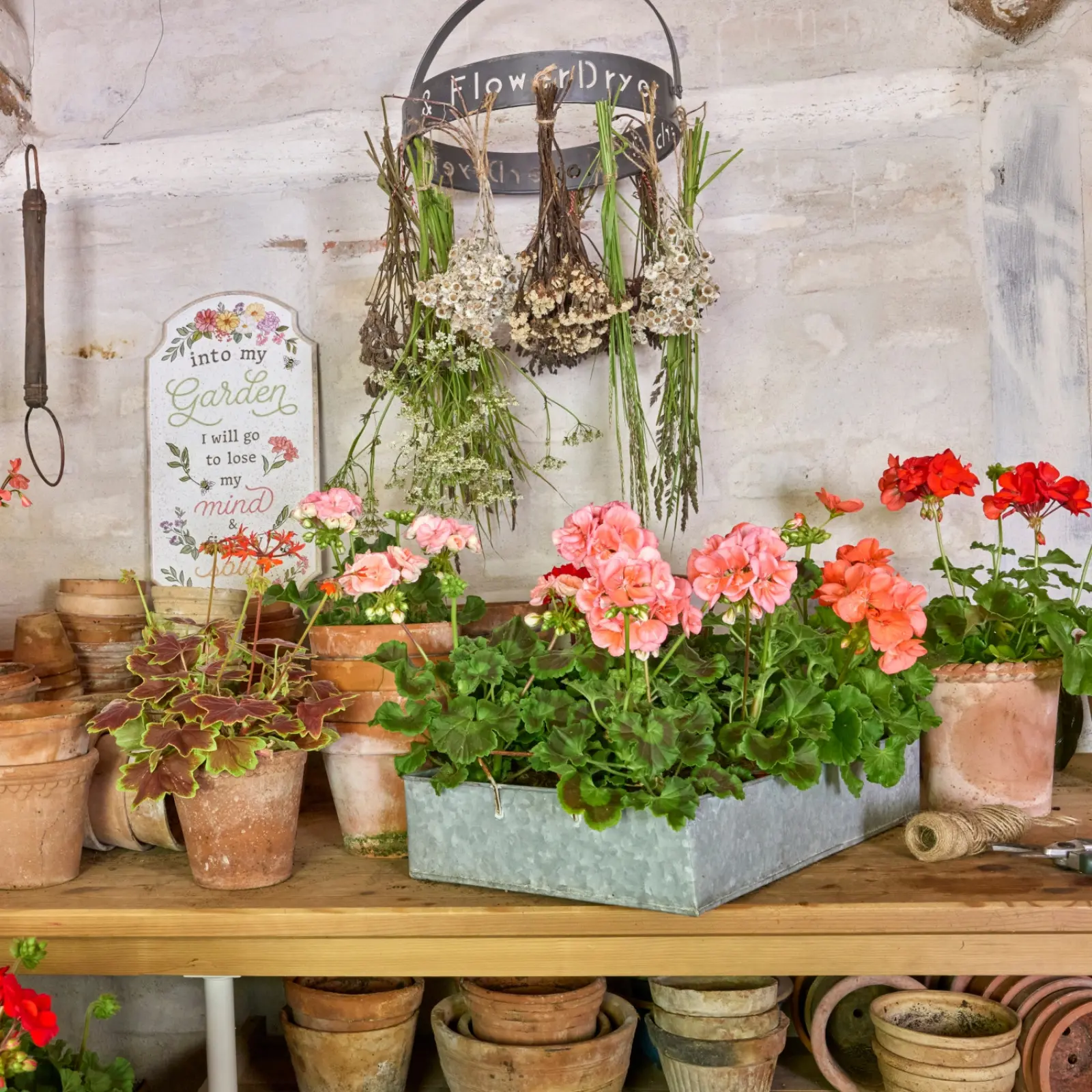 Zestaw pelargonie z naturalnymi materiałami