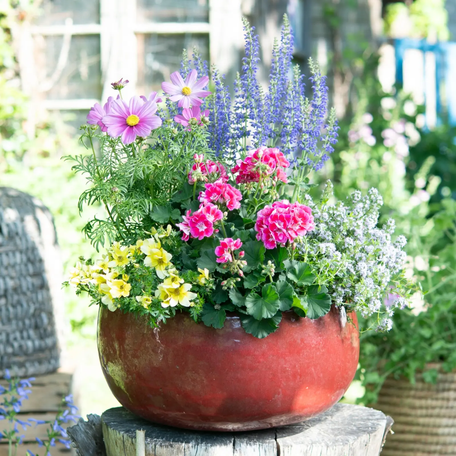 Jeśli chcesz postawić na różnogatunkowe zestawienia – nie bój się łączyć pelargonii z bylinami, ziołami, roślinami jadalnymi czy innymi gatunkami sezonowymi. Baw się formami i kolorami.