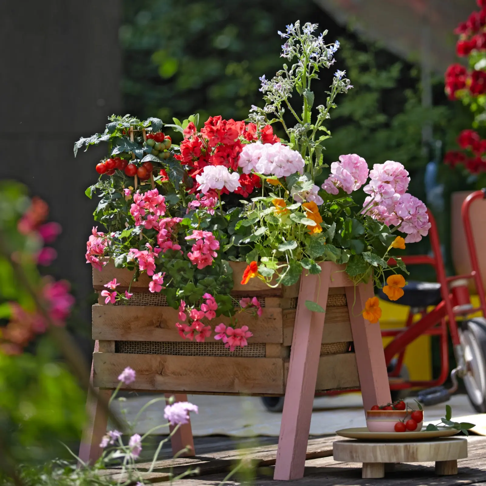W trendach dekoracyjnych pojawia się też motyw podróży i przywoływania wspomnień z wyjazdów. Pelargonie bardzo łatwo wpisać w taki klimat, choćby z dwóch względów: mają kwiaty w radosnych kolorach i kwitną latem.
