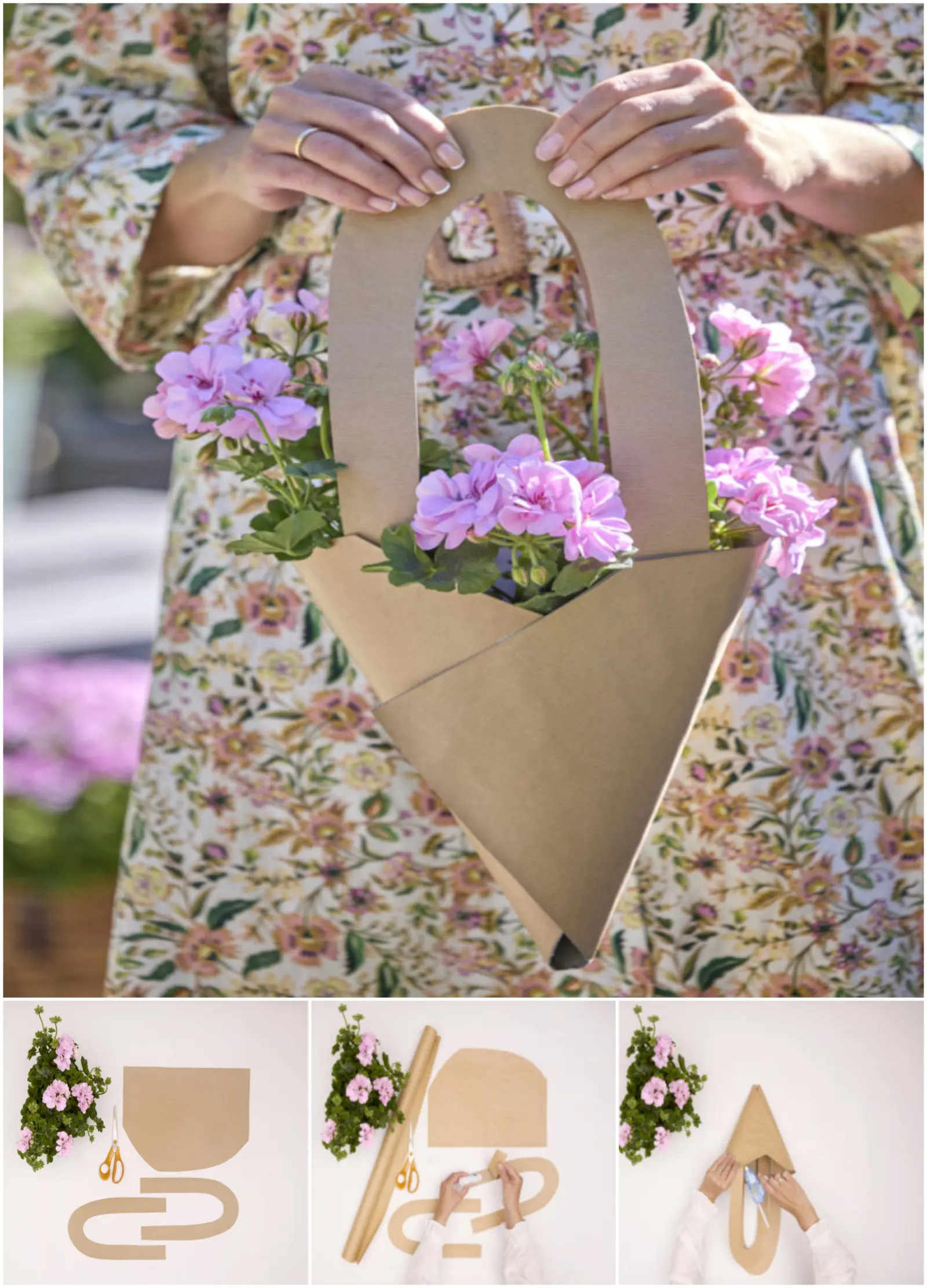 Oryginalne opakowanie sprawia, że prezent wygląda naprawdę wyjątkowo. Ta papierowa torba nie tylko bezpiecznie mieści pelargonię, ale też efektownie ją prezentuje. Opakowanie jest jednocześnie wytrzymałe i dekoracyjne, a jego wykonanie zajmuje niewiele czasu — idealne na spontaniczne, letnie wizyty! Karton zapewnia stabilną podstawę torby, a brązowy papier pakowy nadaje jej wygląd tradycyjnej torby prezentowej.
