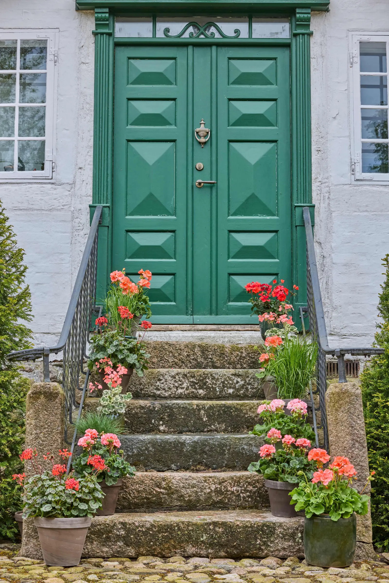Pelargonie doskonale wpisują się w takie aranżacje – ich intensywne kolory i bujne kwiaty pięknie uzupełniają otoczenie, niezależnie od tego, czy stoją przed bielonymi ścianami, pod strzechą, czy na naturalnej kostce brukowej. W połączeniu z drewnem, kamieniem, wikliną i rustykalnymi meblami tworzą ogród pełen życia, który jest jednocześnie spokojny i relaksujący
