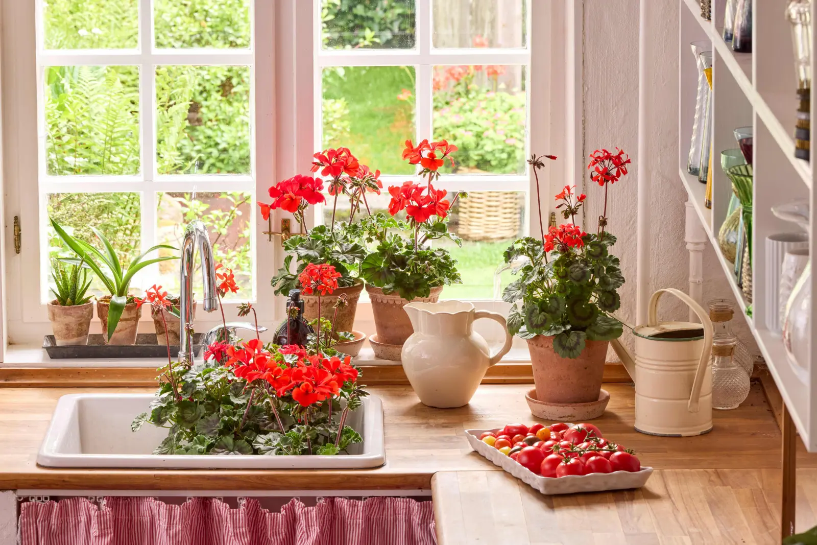 Pelargonie wnoszą też odrobinę wiejskiego klimatu do wnętrza domu. Na parapetach, w kuchni czy w salonie zapewniają naturalne akcenty w klasycznych donicach, wiklinowych koszach lub rustykalnych pojemnikach. W połączeniu z drewnem, ceramiką, tkaninami i innymi dekoracjami tworzą harmonijną przestrzeń, pełną ciepła i spokoju – w duchu nowoczesnej, wiejskiej chaty.