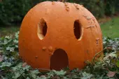 Jeśli chcesz po Halloween wykorzystać dynię w kuchni, nie drąż w niej, ale "przebierz" ją za czarownicę, ducha lub wampira. Możesz też ułożyć w ogrodzie lub przed domem wzór z wielu dyń, albo jedynie stworzyć halloweenowy wzór rzeźbiąc w skórce. Wtedy miąższ ze środka pozostanie nie naruszony. Co więcej, tak przygotowana dynia będzie nie tylko piękną dekoracją, ale również smacznym dodatkiem do Twoich potraw po zakończeniu święta.