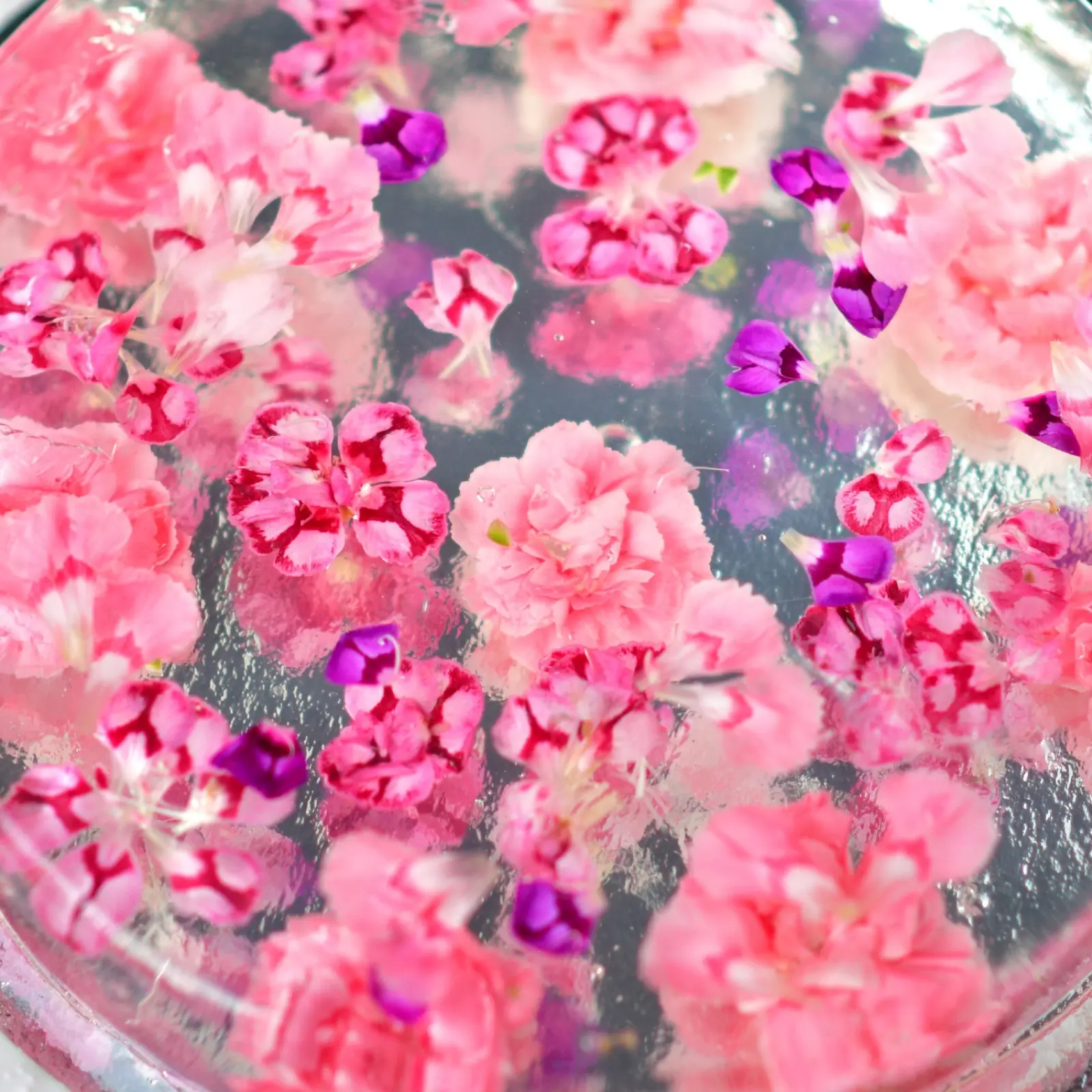 Na dno foremki, najlepiej silikonowej o pojemności 1 litra, wlej niewielką ilość rozpuszczonej i wystudzonej galaretki. Wrzuć płatki kilku goździków, pozbawionych długich białych końcówek i odstaw foremkę do lodówki. Kiedy pierwsza warstwa zastygnie, wlej kolejną porcję rozpuszczonej galaretki, wrzuć kolejne płatki goździków, tym razem w innym kolorze i wstaw do lodówki.
