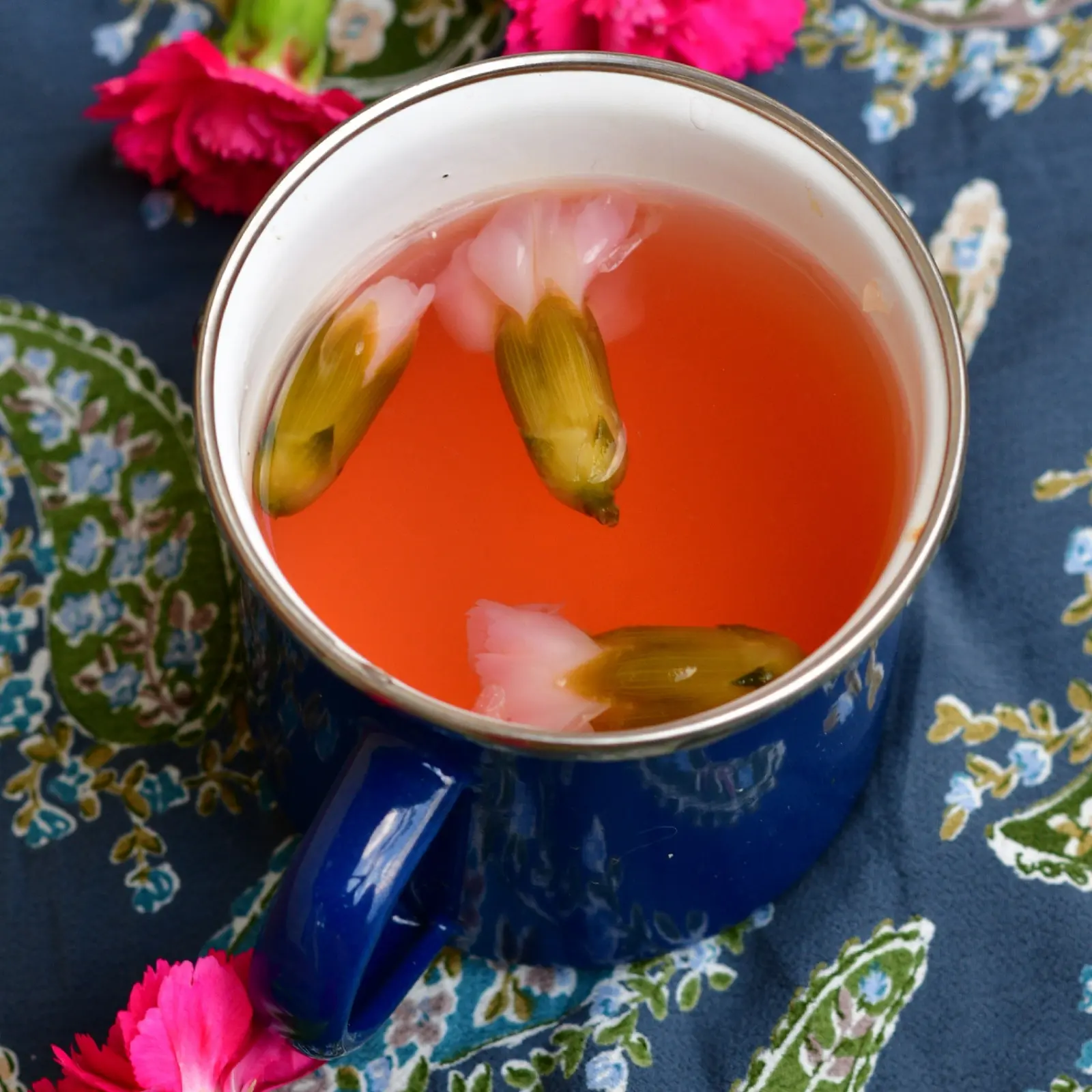 PRZEPIS: Suszone płatki goździków ogrodowych wrzuć do czajniczka i zalej 0,5 litra wrzątku; odstaw na kilka minut. Jeśli używasz świeżych kwiatów, płatki z dwóch lub trzech goździków wrzuć do szklanki gotującej się wody i odstaw pod przykryciem na kilka minut. Żeby lepiej uwydatnić kolor i smak goździkowej herbatki, dodaj do niej sok z cytryny. Herbatka z goździków ma bardzo przyjemny, lekko korzenny i kwiatowy aromat.