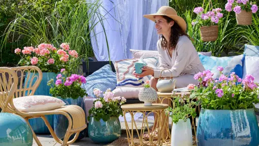 W ostatnim czasie jednym z największych trendów wnętrzarskich jest styl boho. Okazuje się, że coraz częściej jego elementy przenikają także do ogrodów. Styl boho to przede wszystkim wiklina, bambusy, naturalne drewno, makramy i rośliny, które kojarzą się z egzotycznymi wakacjami nad oceanem. Jednak w ogrodzie w stylu boho znajdzie się też miejsce dla pelargonii! Rośliny te dodadzą całej aranżacji jeszcze więcej sielskiego charakteru, a przy tym wprowadzą trochę koloru do dominującej neutralności. Najlepiej sprawdzą się odmiany o pastelowych odcieniach czerwieni i różu. Balkon w stylu boho z pelargoniami to idealne rozwiązanie dla tych, którzy cenią sobie tradycyjne i klasyczne rośliny, ale jednocześnie inspirują się najnowszymi trendami w projektowaniu.