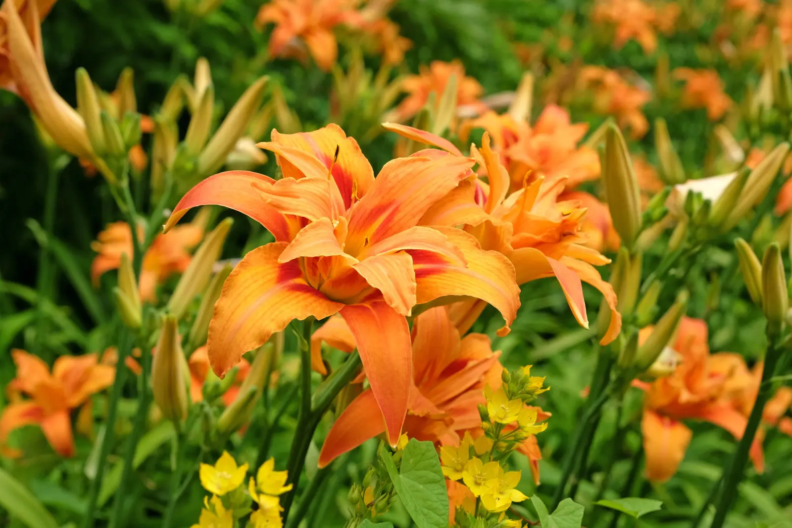 Liliowce słyną z tego, że każdy kwiat kwitnie tylko jeden dzień – ale jest ich tyle, że roślina kwitnie tygodniami. Występują w niezliczonej liczbie odmian i kolorów – od żółci po purpurę. Wymagają regularnego podlewania i żyznego podłoża, ale odwdzięczają się spektakularnym efektem.