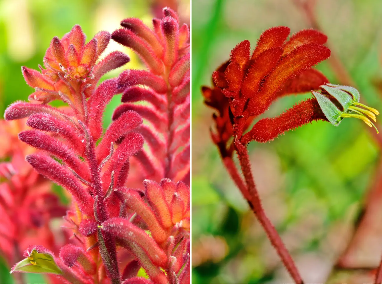 Choć brzmi to niewiarygodnie, kangurza łapa (Anigozanthos) rzeczywiście wygląda, jakby jej kwiaty miały coś wspólnego z kończynami torbacza. Drobne, wydłużone rurki pokryte są gęstym meszkiem, który z daleka przypomina... futerko. Ich kolor? Od głębokiej czerwieni po słoneczną żółć – nasycone, żywe barwy idealnie kontrastują z soczystą zielenią liści.
