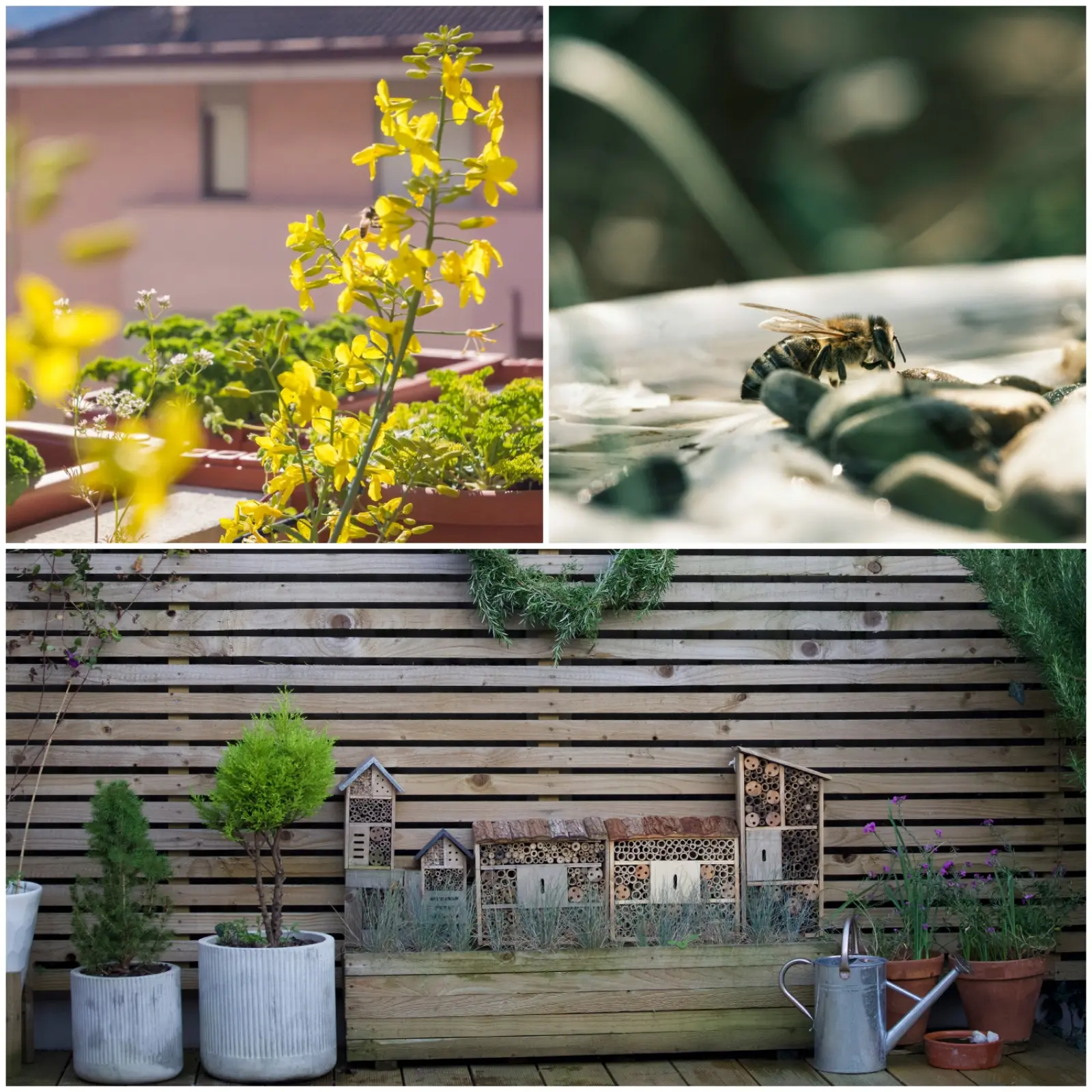 Aby mini oaza spełniania warunki miejsca przyjaznego pszczołom i motylom, trzeba zadbać tylko o trzy punkty. Zrób to dla nich, aby Twój balkon znalazł się ważnym miejscem w drodze na ich mapie. Zapewnij im pożywienie, wodę i dach nad głową.