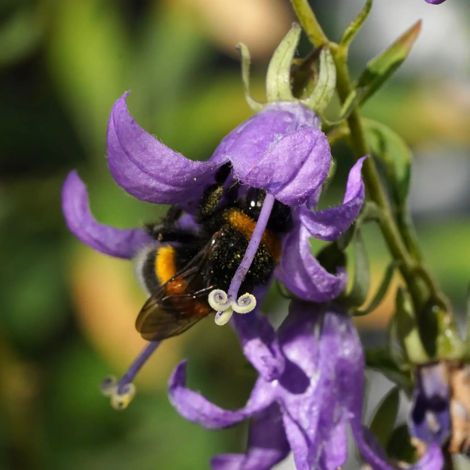 Przyszedł czerwiec z potęgą lata i pełnią kwitnienia wielu gatunków. Skład roślin uzupełnił zawciąg pospolity i… dzwonki: pokrzywolistny, jednostronny i kropkowany. Wszystkie wyglądały przepięknie i przede wszystkim spodobały się zapylaczom. To był strzał w dziesiątkę. Ilość trzmieli i innych pszczół robiła wrażenie. W czerwcu zaczęła swoje kwitnienie kolejna nieszablonowa roślina – mierznica czarna. I jeżeli miałabym podsumować, która roślina była najchętniej odwiedzana przez pszczoły – to właśnie byłaby to ta rodzima roślina z rodziny jasnotowatych; można ją spotkać na obrzeżach lasów, przydrożach, w zaroślach oraz… na moim balkonie.