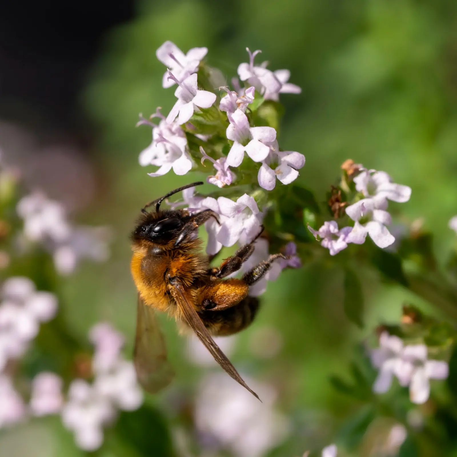 Gdzie jednak w tym wszystkim zioła? Przedmiotem moich balkonowych badań były różne gatunki mięty: zielona i pieprzowa, niebieska kocimiętka, lebiodka pospolita, macierzanka tymianek, macierzanka cytrynowa oraz szałwia muszkatołowa. Najrzadziej odwiedzane przez zapylacze była macierzanka cytrynowa i szałwia muszkatołowa – jednak tej ostatniej wybaczyłam to lekko, ponieważ uwielbiam jej zapach i zawsze musnę ją, przechodząc obok, aby podzieliła się ze mną swoim aromatem.