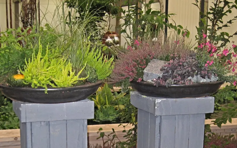 Wrzosy pięknie wyglądają, gdy są sadzone do jednej donicy po kilka, różnokolorowych odmian. |