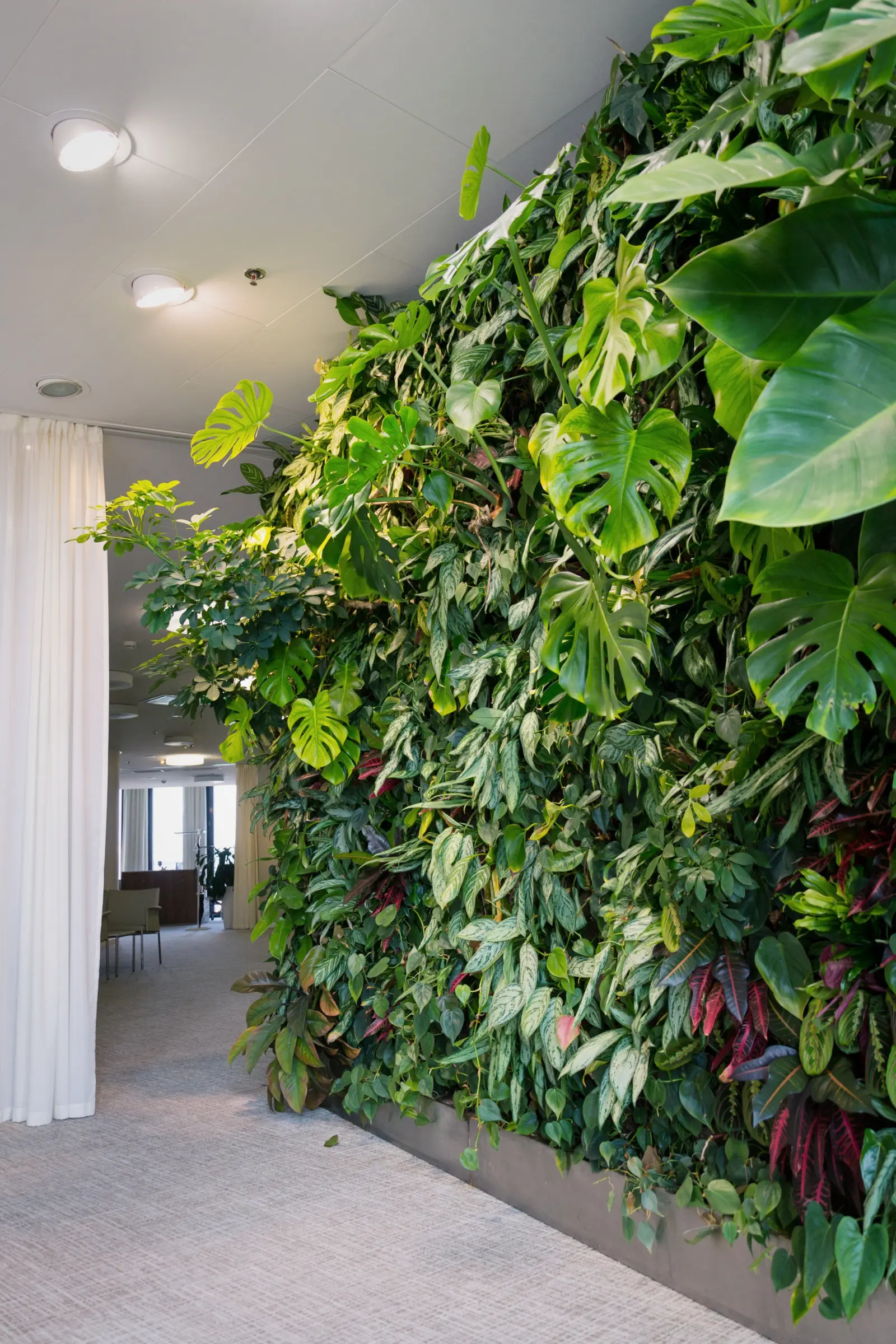 Dobór światła to klucz. Jeśli ściana, którą przewidujesz, ma dużo słońca (np. południowa lub zachodnia wystawa), możesz użyć roślin, które lubią dużo światła, np. sukulentów. Jeśli masz bardziej zacienione pomieszczenie, musisz wybierać gatunki tolerujące cień i rozproszone światło – np. zielistki, epipremnum, maranta. Źle dobrane warunki świetlne prowadzą do słabego wzrostu, wyciągniętych, bladawych liści lub wręcz obumierania roślin.