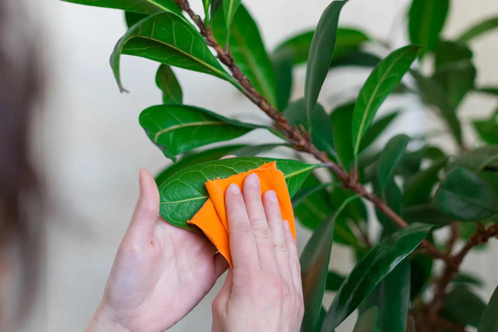 Roztwór najlepiej aplikować miękką ściereczką z mikrofibry lub wacikiem. Delikatnie przecieraj każdy liść z osobna, po obu stronach, by usunąć kurz i zabezpieczyć powierzchnię. Można też spryskać liście delikatną mgiełką, ale wówczas warto po chwili przetrzeć je ręcznikiem papierowym, by nie pozostawić zacieków.