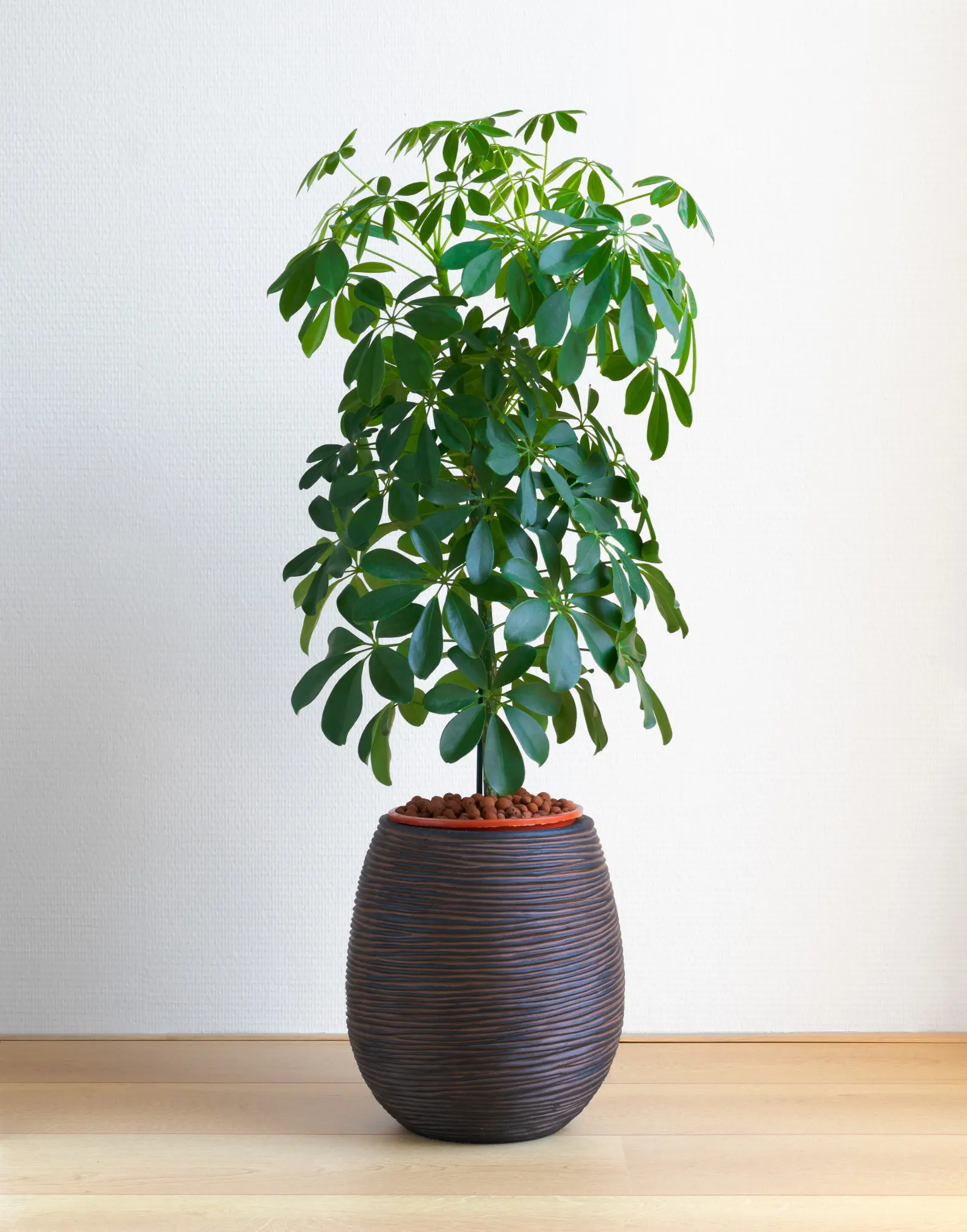 Drzewko parasolowe to idealny wybór dla osób, które chcą mieć w domu roślinę efektowną, ale mało kłopotliwą w pielęgnacji. Nie trzeba na nią dmuchać i chuchać, nie kaprysi przy zmianie miejsca, nie choruje i – co równie ważne – świetnie radzi sobie nawet w mniej doświetlonych wnętrzach, o ile nie są zupełnie ciemne.