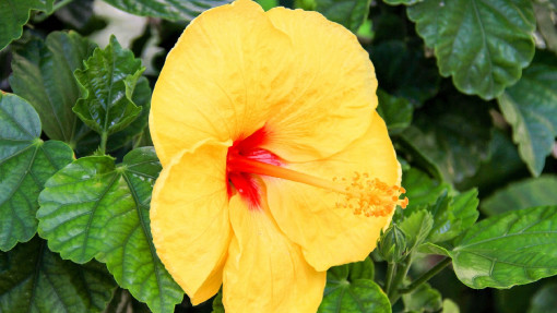 Hibiskus wprost kipi energią – jego duże, zachwycające kwiaty w kształcie trąbki, występują w rozmaitych kolorach: od białego, różowego i czerwonego aż po fioletowy, żółty czy nawet w dwóch odcieniach, spotyka się także dwubarwne kwiaty. Kształty mogą być zmienne - od w pełni otwartych, czasem pomarszczonych, do rozszerzonych trąbek. Ze środka kwiatu często sterczy kolumna zrośniętych pręcików. Liście zwykle są ciemno zielone i błyszczące ale są także odmiany o pstrokatych liściach