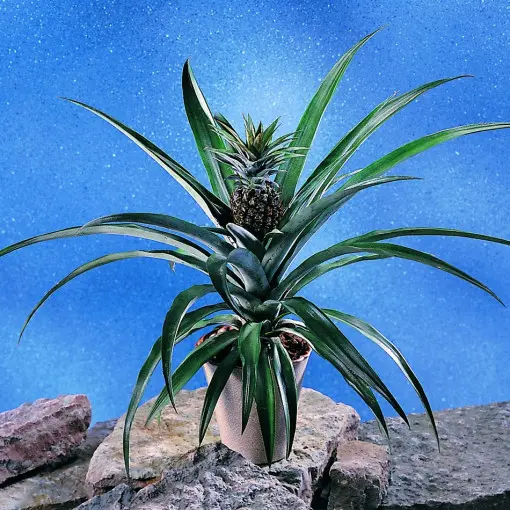 Ananas pochodzi z Brazylii, do Europy został sprowadzony w końcu XVII wieku. Pierwszych owoców doczekano się dopiero 30 lat później w Anglii, odtąd były uprawiane na równi z pomarańczami i winoroślą jako przysmak dla bogaczy. Odmiana ananasa 'Champaca' nie tylko pięknie wygląda, ale tworzy jadalne owoce. Początkowo są one fioletowo-zielone, jak zmienią swój kolor na pomarańczowy są w pełni dojrzałe.