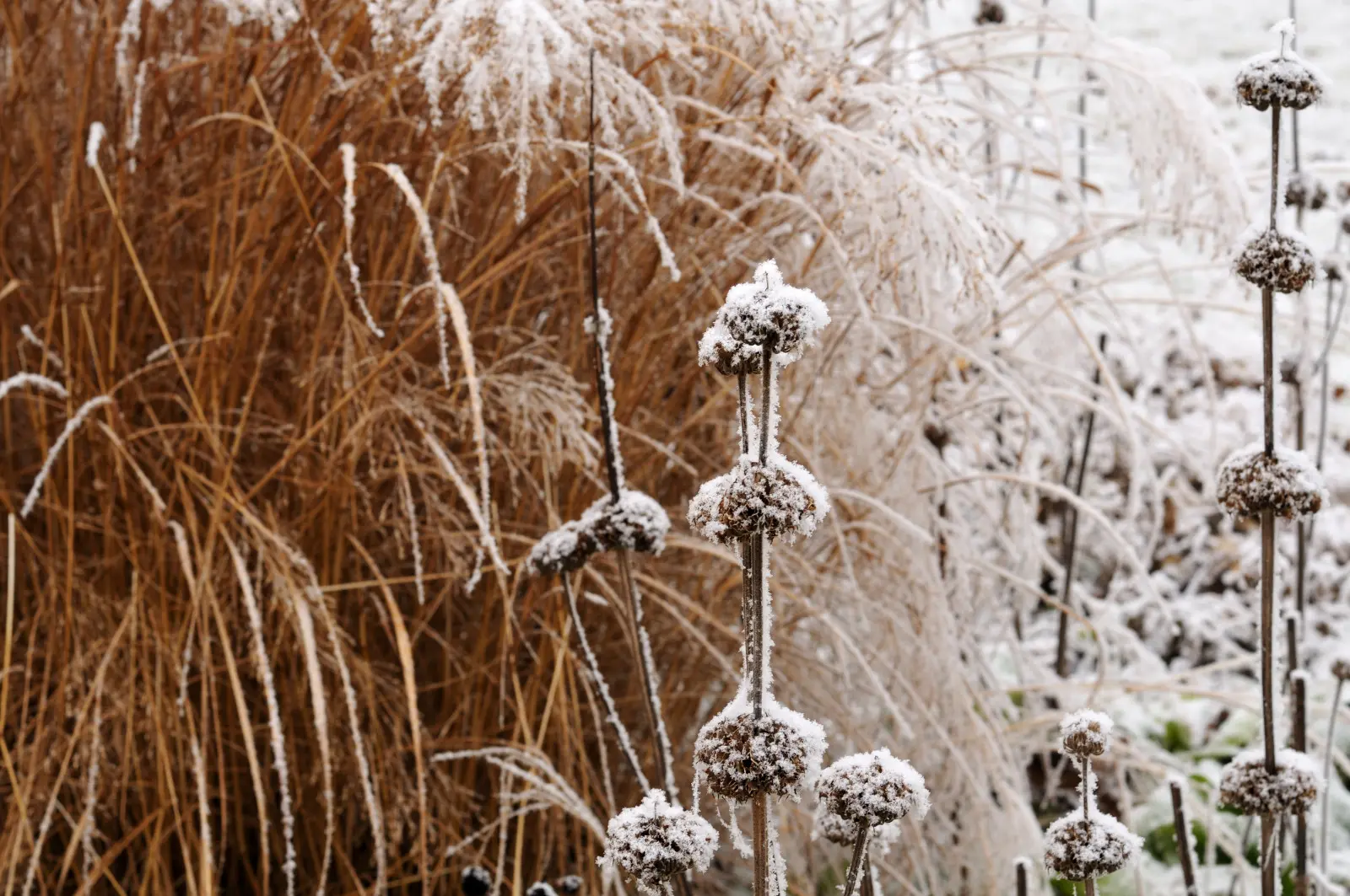 - Przycinanie – zeschnięte pędy kwiatostanowe usuwamy dopiero wiosną, bo zimą zdobią i częściowo osłaniają kępę.
