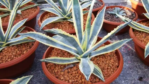 - agawa drobnokwiatowa (A. parviflora) – (zdj. 5) roślina doniczkowa; wys. 30 cm; liście wąskolancetowate, biało nakrapiane z białymi włóknami w górnej części