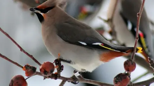 Roślina zakwita wczesną wiosną (IV-V), wydając drobne, biało-różowe, pięciopłatkowe kwiaty z długą rurką, zebrane na szczytach pędów w duże, gęste, kuliste kwiatostany, wydzielające silny aromat, przypominający zapach hiacyntów lub też narcyzów (zdania są podzielone). Po przekwitnieniu kwiaty przekształcają się w pękate, lekko wydłużone, początkowo czerwone, później czarne, owoce (jagody), zebrane w grona. W naszym klimacie owoce zawiązują się jednak rzadko.