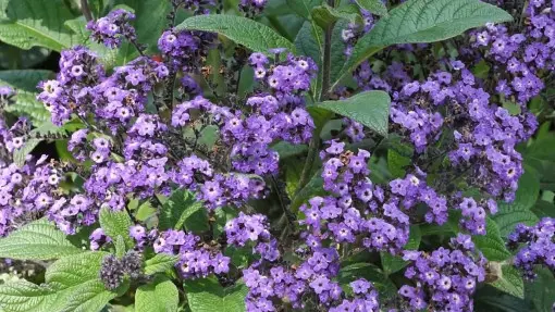 Heliotrop peruwiański w zależności od odmiany osiąga od 20 do nawet 90 cm wysokości. Wytwarza charakterystyczne, duże, ciemnozielone, jajowate i owłosione liście z bardzo wyraźnym unerwieniem.