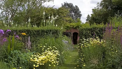 Użyte rośliny są charakterystyczne dla ogrodów wiejskich. Są to m.in. piwonia chińska, róża pnąca, liliowiec ogrodowy, malwa, tulipan a także różne gatunki tawuł, forsycja pośrednia, migdałek trójklapowy, śliwa wiśniowa, brzoza brodawkowata, świerk pospolity, sosna zwyczajna, wierzba płacząca, buk pospolity oraz pnącza: bluszcz pospolity, powojnik i winorośl.