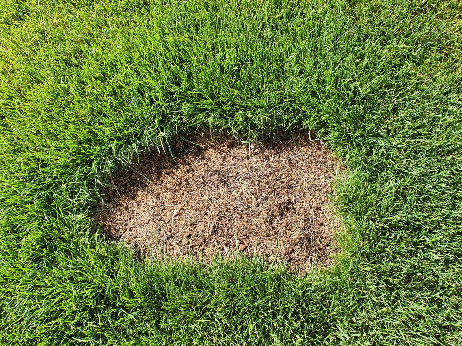 mocz psa (charakterystyczne zielone obrzeża i wypalony środek),