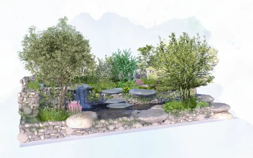 Ogród Bible Society: The Psalm 23 Garden czerpie inspiracje z krajobrazu Dartmoor, w którym dorastała projektantka, i przybiera formę sanktuarium, schronienia które zaprasza do siebie i oferuje kojąc widok tego krajobrazu. Odzwierciedla zarówno podróż, jak i cel, o którym mowa w Psalmie 23.