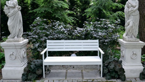 Na trawniku rośnie wiele, misternie przyciętych drzew i krzewów – żywotniki (Thuja) ‘Brabant’, dąb szypułkowy (Quercus robur) ‘Laciniata’, klony palmowe, ale także płożące jałowce, berberysy i niskie rododendrony, jak różanecznik gęsty (Rhododendron impeditum). Dumą tego miejsca jest 70- letni tulipanowiec amerykański (Liriodendon tulipifera).