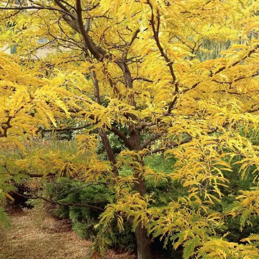 Zakładając duży ogród na wilgotnym podłożu, np. nad brzegiem jeziora, można posadzić metasekwoję chińską (Metasequoia glyptrostroboides) lub jej odmianę 'Ogon' o złocistych igłach, cypryśnik błotny (Taxodium distichum), choinę kanadyjską (Tsuga canadensis) o miękkich igłach, brzozę omszoną (Betula pubescens), potężny jesion wyniosły (Fraxinus excelsior) lub pięknie przebarwiający się jesienią ambrowiec balsamiczny (Liquidambar styraciflua).