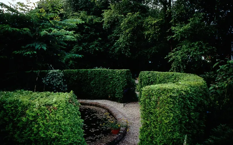Fot. iVerde Krzewy zimozielone są doskonałym tłem dla roślin liściastych i kwiatów sezonowych. Tworzą ramy dla całego ogrodu. |