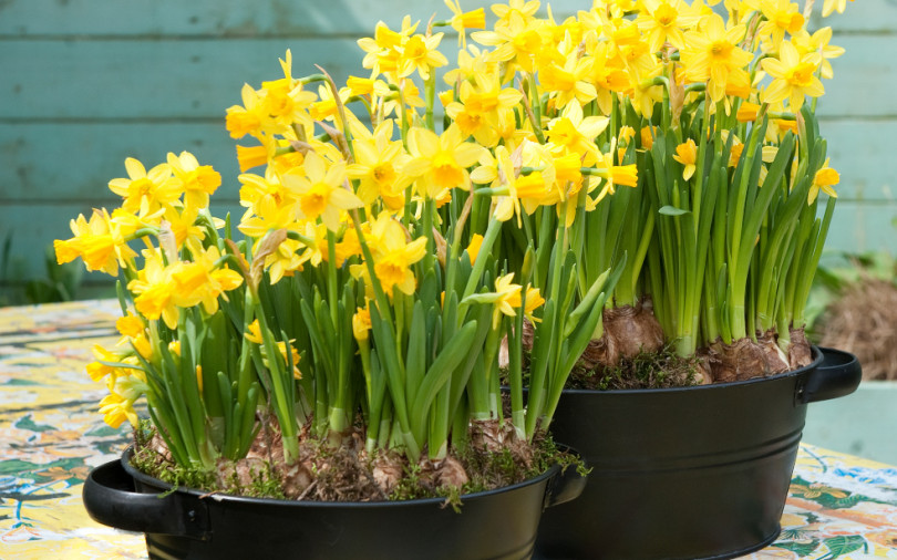 Odkryj jasne, lśniące kolory narcyzów (Narcissus), często nazywanych żonkilami. Mają długie łodygi, na których znajdują się urocze, duże kwiaty z zawadiackimi trąbkami w środku. W sklepach znajdziemy wiele rodzajów narcyzów: pojedyncze, pełne, a nawet te o bardzo intensywnym zapachu. Są one dostępne w kolorze białym lub w różnych odcieniach żółtego, łososiowego i pomarańczowego, przy czym trąbki mogą mieć taką samą lub inną barwę niż płatki.