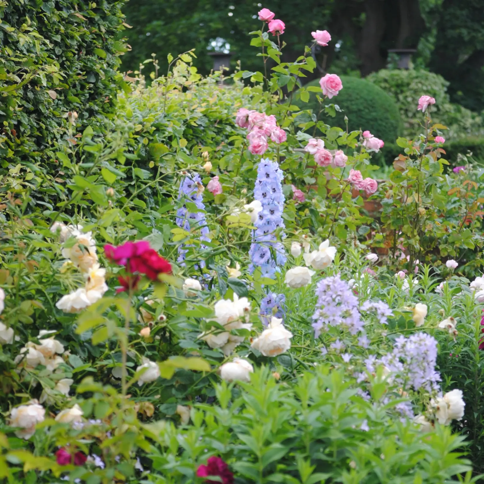 Gdyby ktoś zapytał mnie, jak zaplanować rabatę angielską, która w czerwcu będzie przypominać najbardziej ikoniczne kompozycje oglądane w słynnych ogrodach takich jak Sissinghurst Castle Gardens czy Long Barn (oba ogrody projektu Vity Sackwille-West z pierwszej połowy XX wieku), to zaproponowałabym delikatne pastele i chłodne odcienie z akcentami głębszych błękitów, fioletów i ciepłych różów.