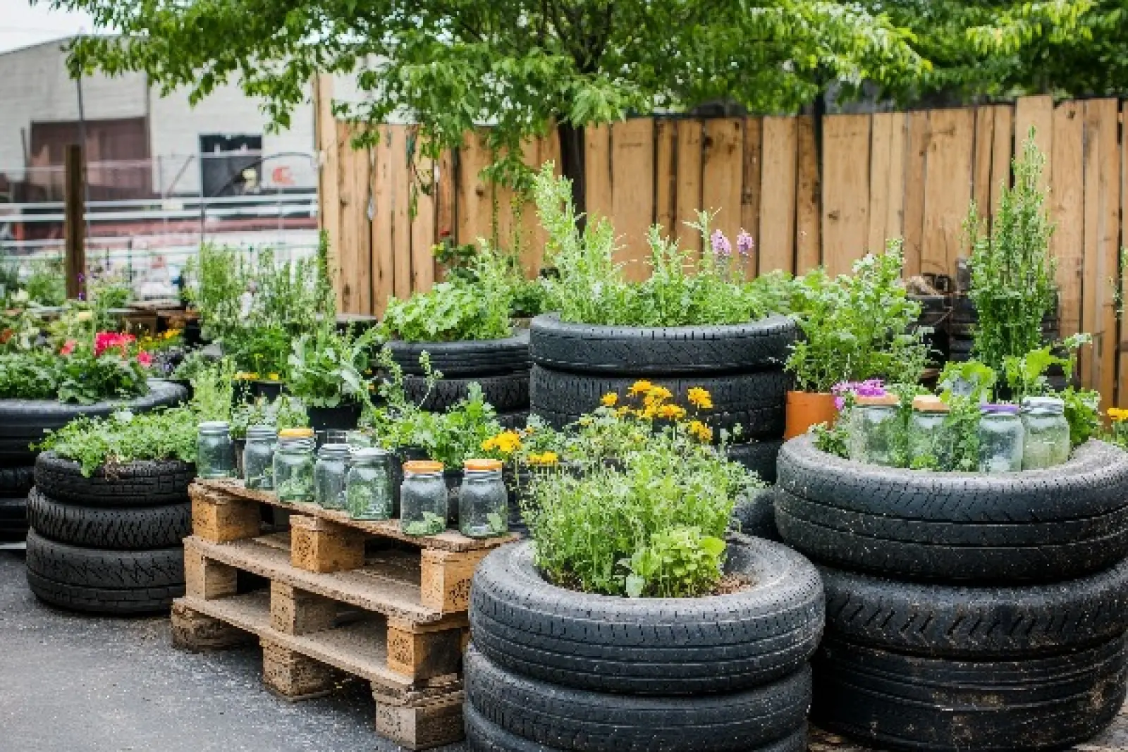 Opony samochodowe, pomalowane farbą, mogą stać się trwałymi rabatami dla kwiatów, warzyw lub krzewów. Nawet stare drewniane szuflady mogą dostać nowe życie jako mini-grządki na zioła.