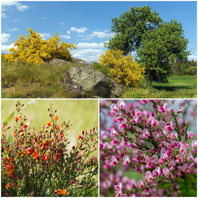 Żarnowiec miotlasty to krzew spotykany w Polsce na obrzeżach lasów sosnowych i nieużytkach. Ma luźny, naturalny pokrój i zielone, cienkie pędy (atrakcyjnie wyglądające zimą). Dorasta do 1,5-2 metrów wysokości i jest typowym przykładem rośliny, która uwielbia piaszczystą, ubogą glebę. Wiosną obsypuje się intensywnie żółtymi kwiatami, tworząc silny efekt kolorystyczny. Idealnie nadaje się do nasadzeń na skarpach, w ogrodach naturalnych i suchych rabatach, gdzie nie wymaga intensywnej pielęgnacji. Świetnie komponuje się z różnej wysokości sosnami.