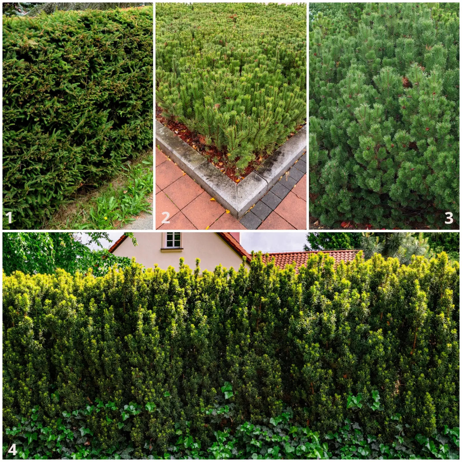 Z roślin iglastych, które mogą się stać się zamiennikiem dla tui w mniejszych ogrodach polecamy jałowce (Juniperus). Na większych przestrzeniach można sięgnąć po świerk pospolity (Picea abies), który co prawda jest wysoko rosnącym drzewem, ale przy corocznym cięciu tworzy gęste i trudne do przebycia bariery. Na suchym podłożu doskonale sprawdzi się sosna górska, czyli kosodrzewina (Pinus mugo), która przy regularnym cięciu tworzy zwarte i trwałe ściany.