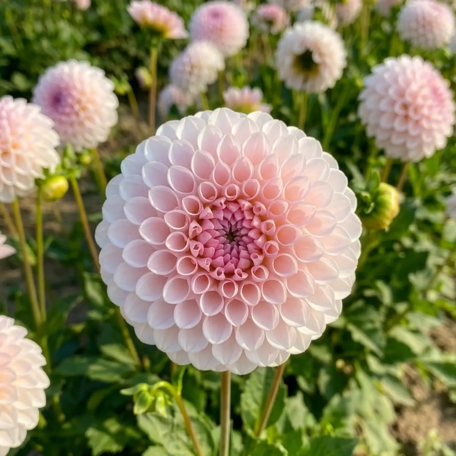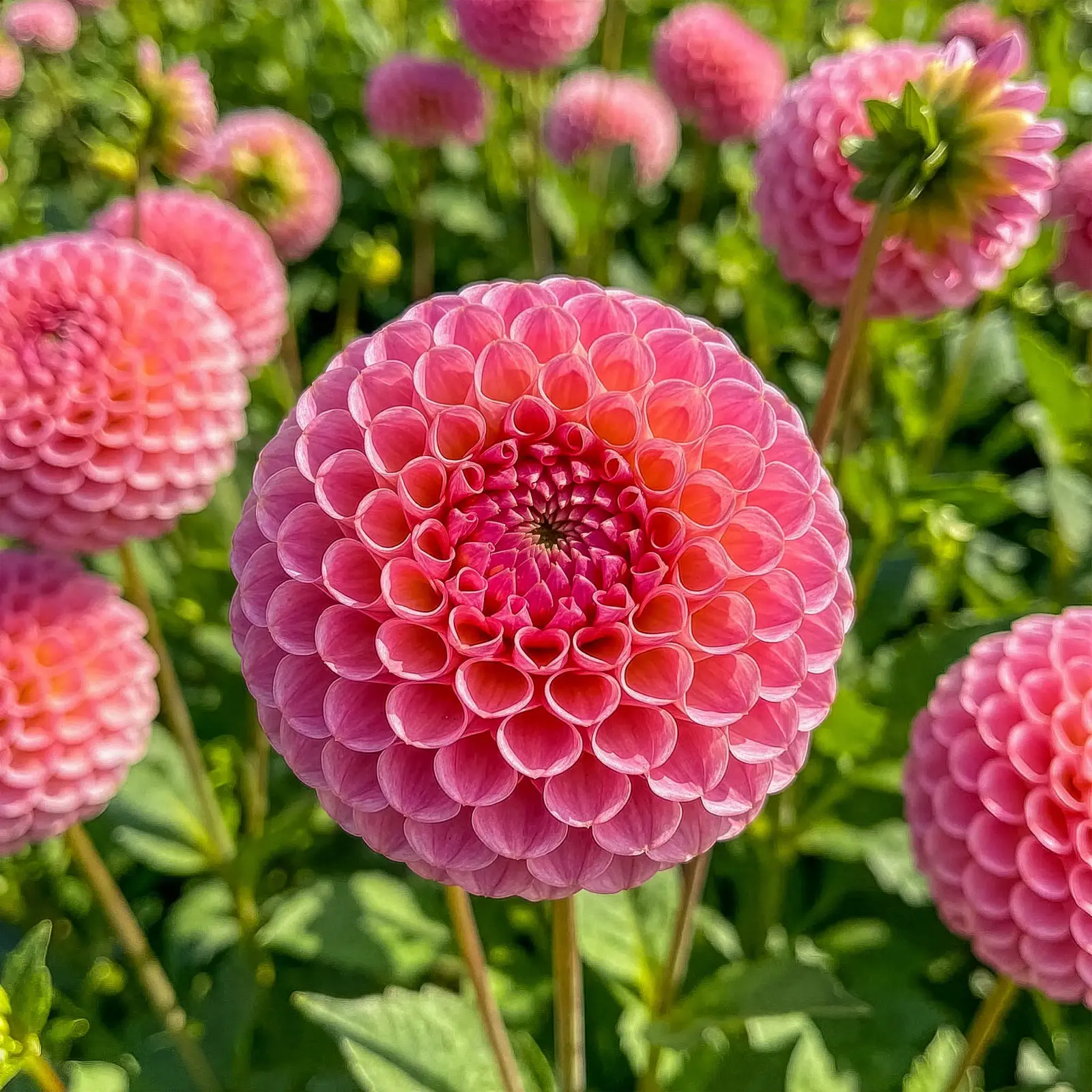 To różowy pompon pełen wdzięku i elegancji – drobne, równo ułożone płatki tworzą efekt misternie wykonanej rozetki. W ogrodzie prezentuje się jak drobiazgowa, biżuteryjna ozdoba. Idealna do eleganckich bukietów i uporządkowanych kompozycji.